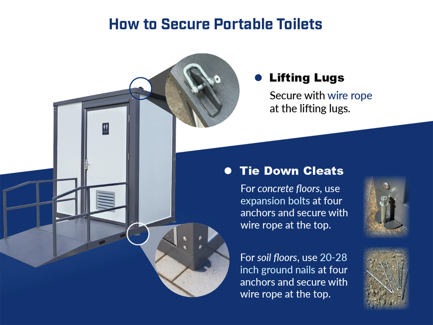 - Our Portable Restrooms need to be supplied with city water or well pump water, and all portable toilet "sewage" needs to be connected to the city sewer system or a simple septic system.