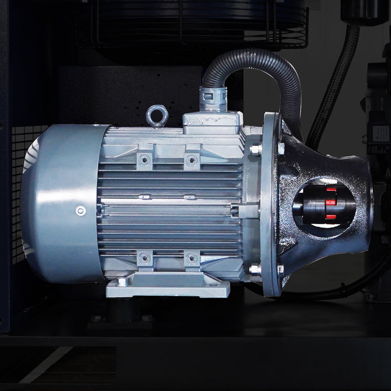The motor and airend are directly connected via a coupling, ensuring 100% power transmission with no energy loss from belt slippage. This robust design eliminates the need for routine belt maintenance and provides exceptional reliability.