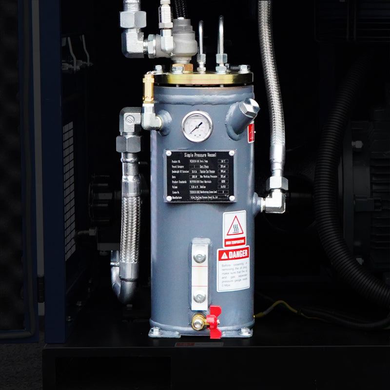 The oil receiver tank ensures highly efficient oil-air separation and delivers cleaner, drier compressed air. Its robust construction guarantees minimal pressure drop, contributing directly to reduced energy consumption and stable system pressure.