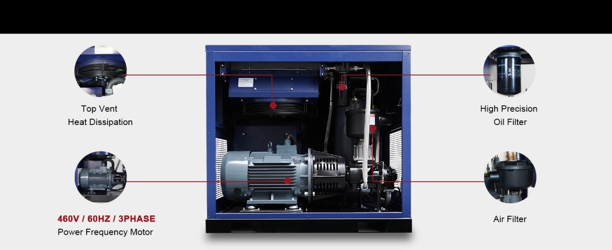 - 30HP Rotary Screw Air Compressor, 123CFM, 125PSI, 460V 3PHASE 60HZ