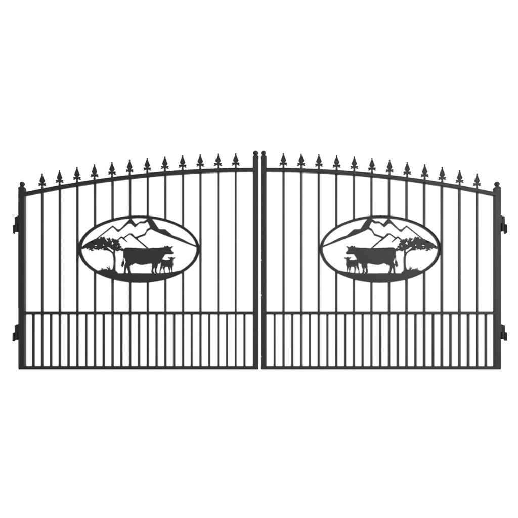 - [AS-IS] 14ft Dual Swing Wrought Iron Gate, OX Pattern