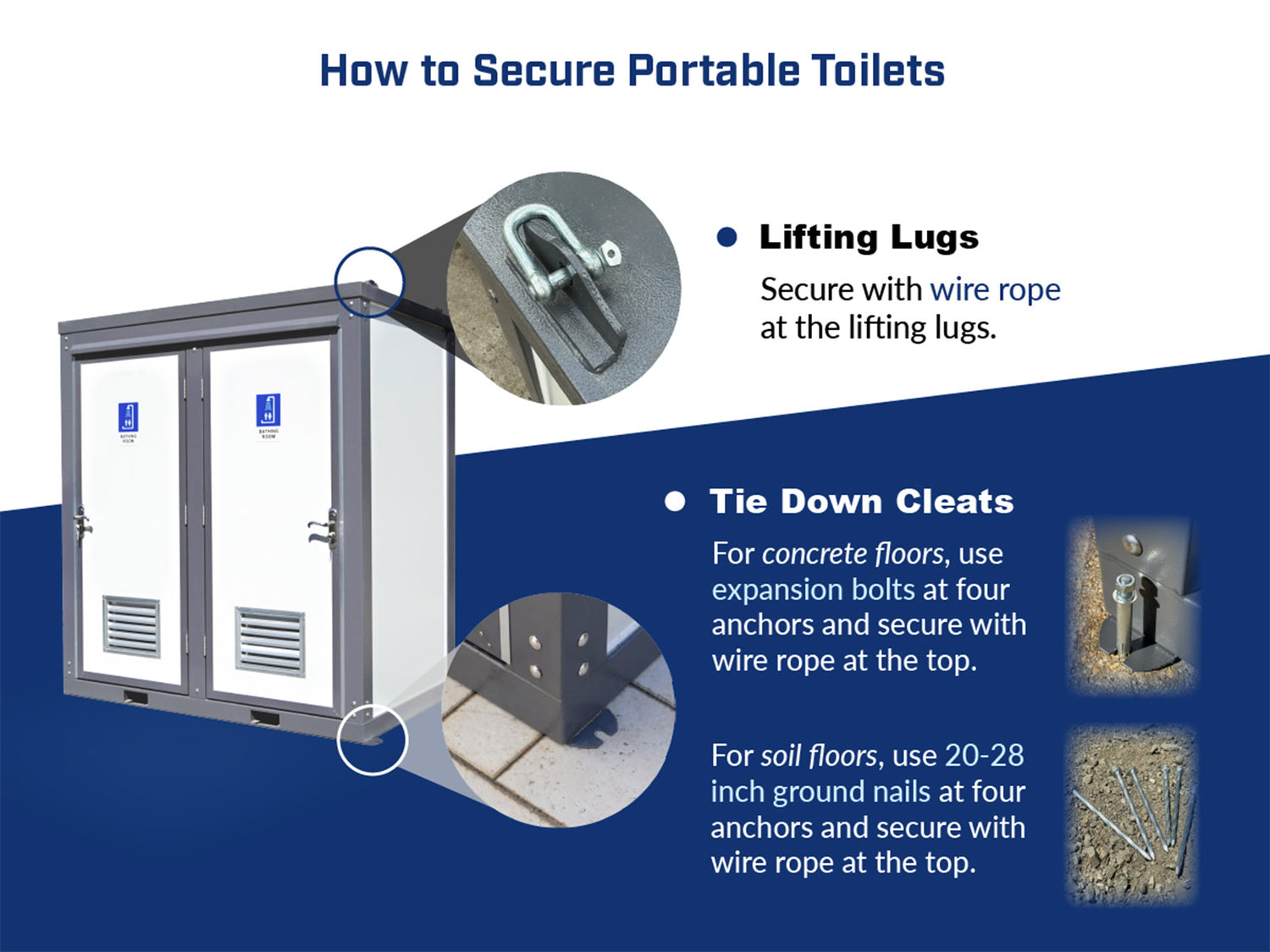 - Our Portable Restrooms need to be supplied with city water or well pump water, and all portable toilet "sewage" needs to be connected to the city sewer system or a simple septic system.