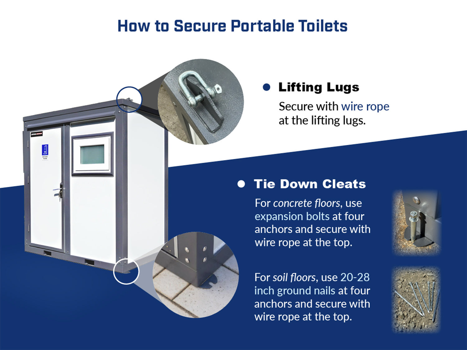 - Our Portable Restrooms need to be supplied with city water or well pump water, and all portable toilet "sewage" needs to be connected to the city sewer system or a simple septic system.