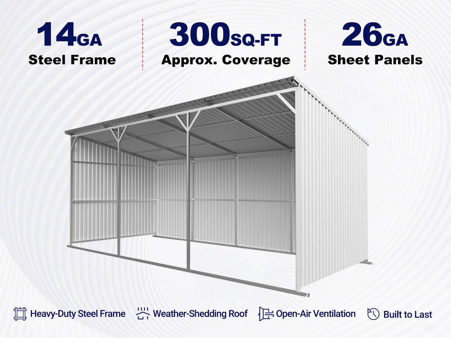 25'x12' Metal Livestock Shed for Horses & Farm Animals